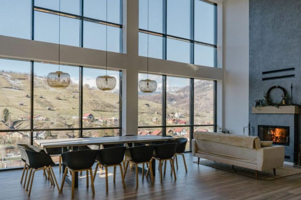 Acest loc îți oferă tot ce are mai bun o cabană clasică românească: lemn, piatră, blănuri și alte elemente de decor montan rustic. E ideală pentru o vacanță scurtă a unui grup sau unei familii de șase persoane, găzduite în trei dormitoare duble, cu acces la trei băi, un living spațios, bucătărie și, mai ales, la două căzi sculptate în lemn. Așa cum îi spune numele, cabana din județul Sibiu te așteaptă cu o priveliște superbă asupra Munților Făgăraș și cu împrejurimi naturale în care să te relaxezi și să te eliberezi de stresul urban.