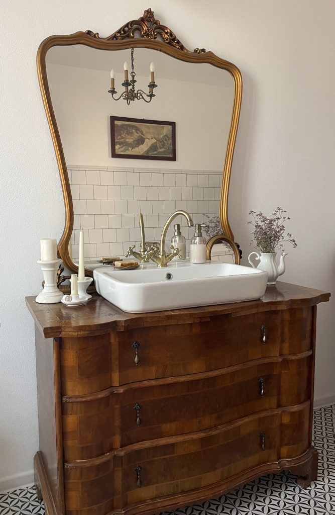 „N-aș zice că mă regăsesc într-un stil anume, dar mă atrage tot ce ține de estetica old world, vechi, cu personalitate, chiar cu o mică doză de bizar. Mă atrag foarte mult obiectele cu detalii, cu patină, care au o poveste în spate. Iubesc să știu că lucrurile care ajung în mâna mea au avut o viață înainte de mine, în alte țări, alte vremuri și cu alți oameni”, spune Alexandra. „În plus, de cele mai multe ori, genul acesta de obiecte vechi sunt și foarte calitative, din lemn masiv, unele lucrate manual. Sunt detalii greu de găsit la obiectele noi, din comerț”.