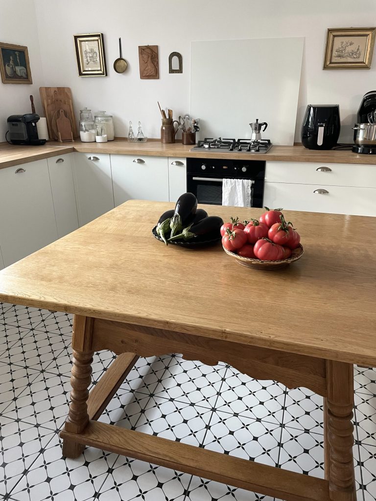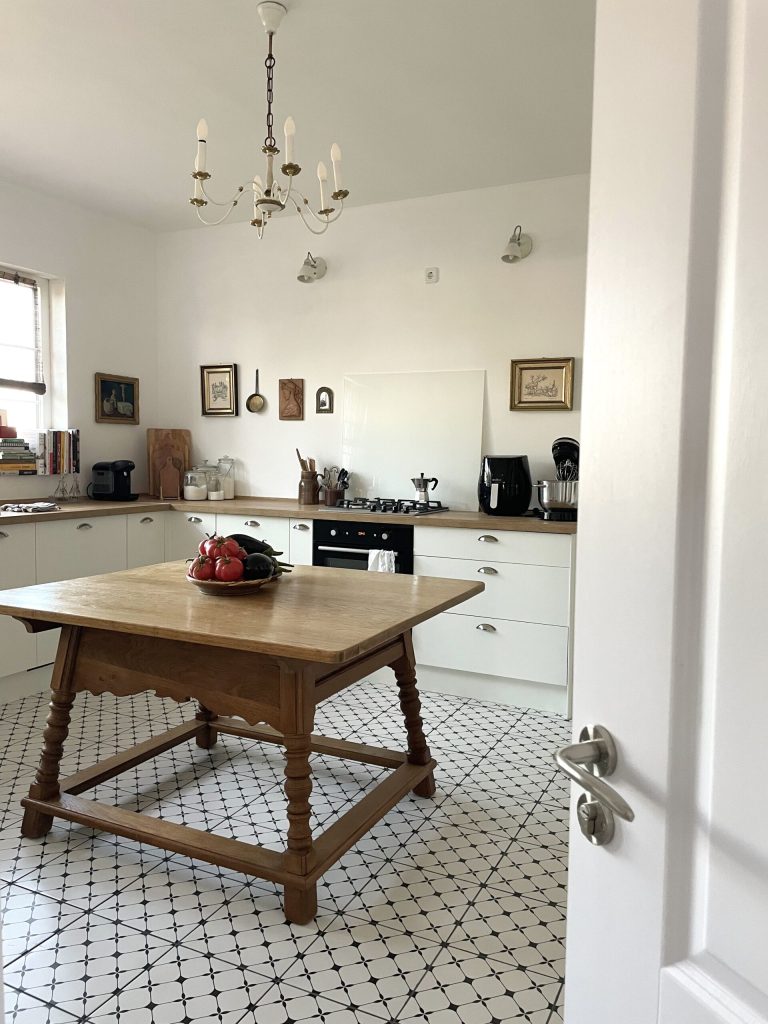 Pentru Alexandra, locul preferat din casă este, fără doar și poate, bucătăria. Nu întâmplător, pentru că aici poate să se bucure, în voie, de pasiunea ei pentru gătit. Alexandra este persoana din spatele contului de Instagram 180degrade, un proiect pe care l-a început în pandemie și care, între timp, a strâns o comunitate de peste 16.000 urmăritori. Prezentarea spațiului pe rețelele de socializare a influențat, într-o oarecare măsură, amenajarea bucătăriei. De exemplu, Alexandra a renunțat la dulapurile de sus și la faianța din zona de backsplash pentru a obține o atmosferă cât mai aerisită în fotografii. Asta nu înseamnă însă că a făcut compromisuri la nivel de funcționalitate și confort.