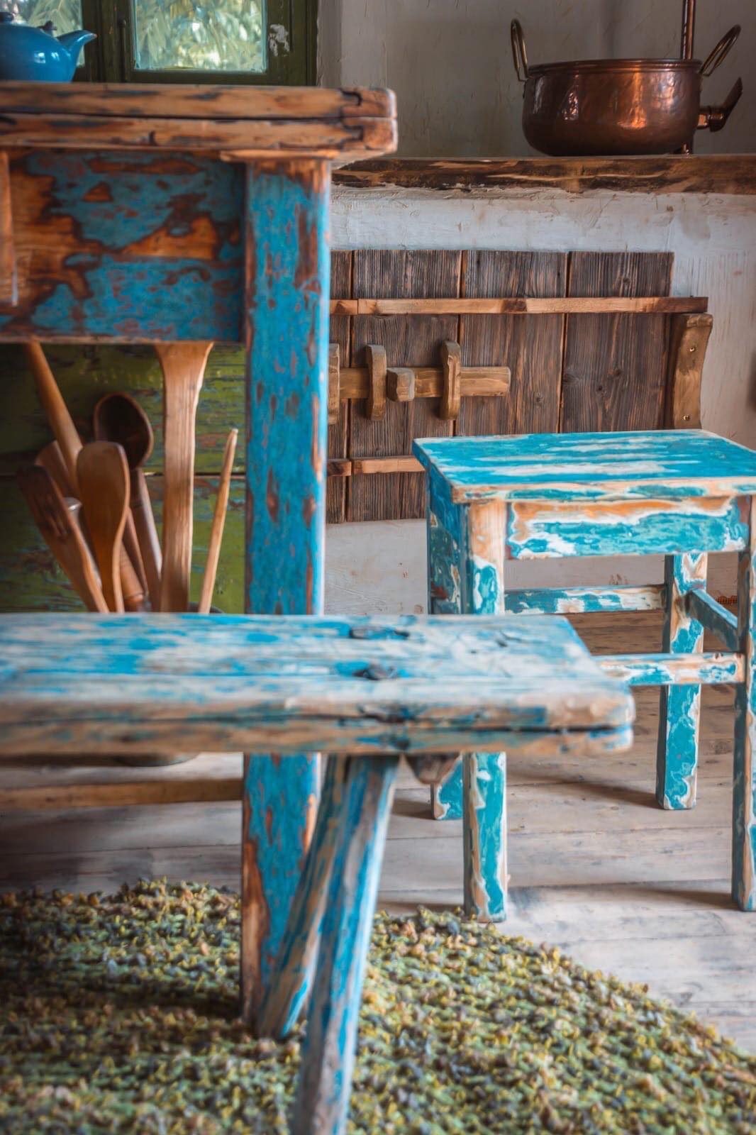 Adriana spune că întreg decorul e unul firesc și de bun simț, ales după intuiție. Mobila din casa este aproape în totalitate din materiale reciclate, realizată din lemnul rezultat în urma demolării pridvorului închis sau din surse locale.