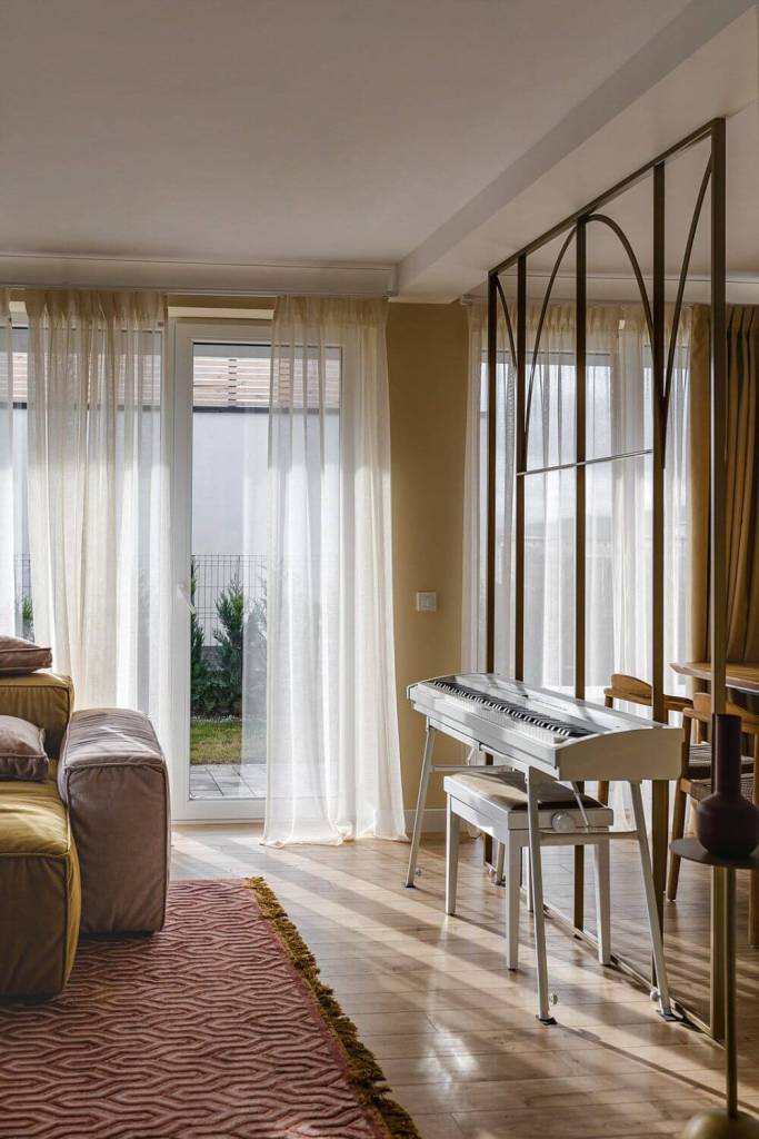 Cerința proprietarilor pentru Laura a fost ca într-un spațiu de doar 20 metri pătrați, cu geamuri pe trei laturi și deschiderea spre hol pe a patra, să găsească loc și să organizeze armonios atât o zonă de dining potrivită pentru opt persoane, cât și o zonă generoasă de lounge, un colț de citit și o pianină. Toate acestea fără să blocheze accesul către curte. Și i se părea imposibil la început, dar a reușit.