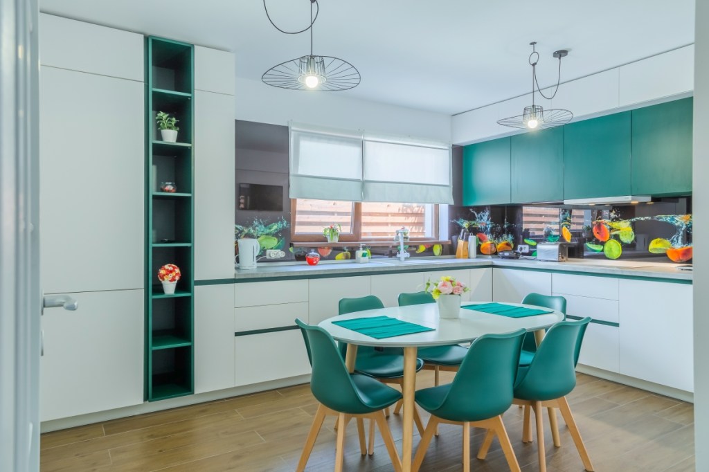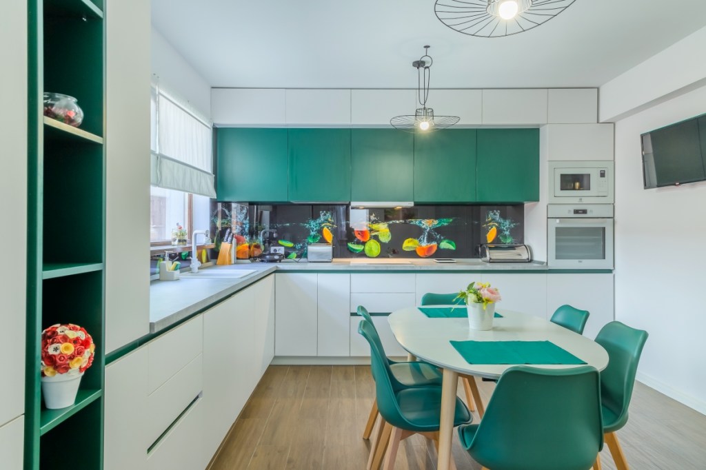 Mobilier, pereți și decorațiuni verzi, într-o casă amenajată cu 40.000 euro în timpul pandemiei