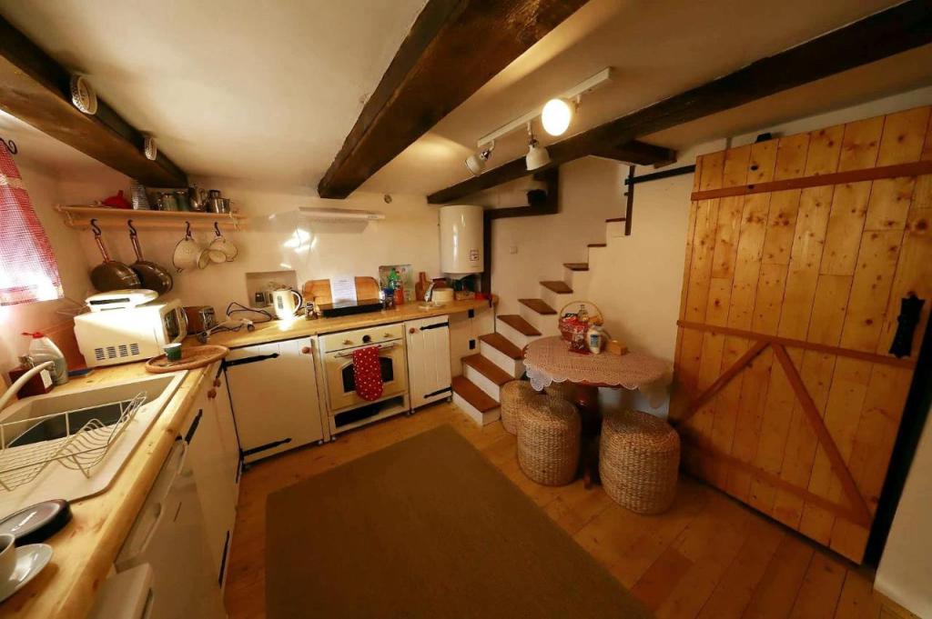 Singura încăpere ruptă din poveste este bucătăria, utilată conform cu nevoile actuale, de la cuptor cu microunde la mașină de spălat vasele.