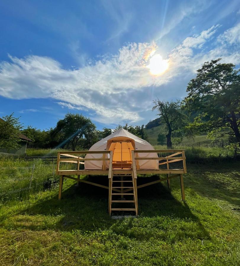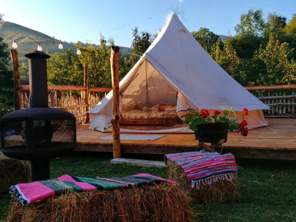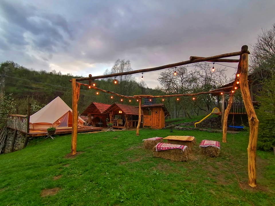 Glampingul este poziționat în inima naturii, înconjurată de munți și păduri, și vine cu foarte multe posibilități de relaxare și meditație, cum ar fi hamacele răspândite în grădină sau vatra în care se strâng oamenii, la masă, la restaurantul cu meniul diversificat.