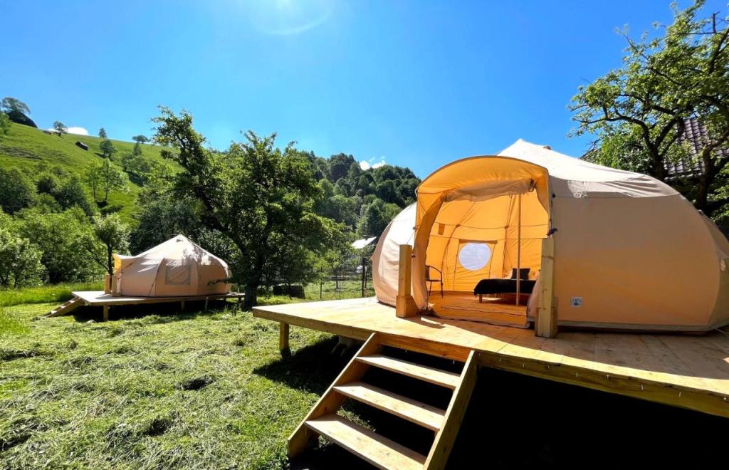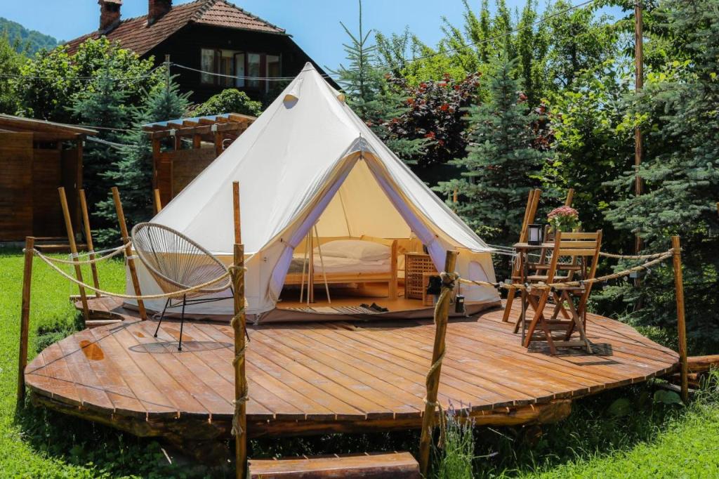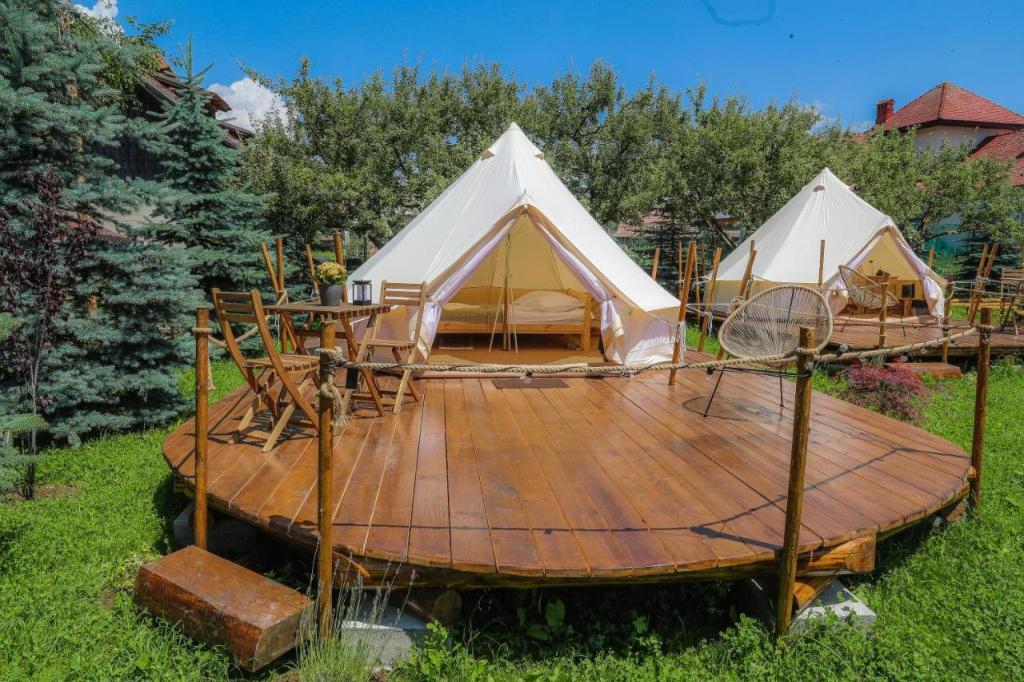 La Valea Doftanei Glamping te așteaptă o serie de corturi de lux amplasate într-o grădină frumos amenajată, cu vedere la munte, din mijlocul satului Trăisteni.