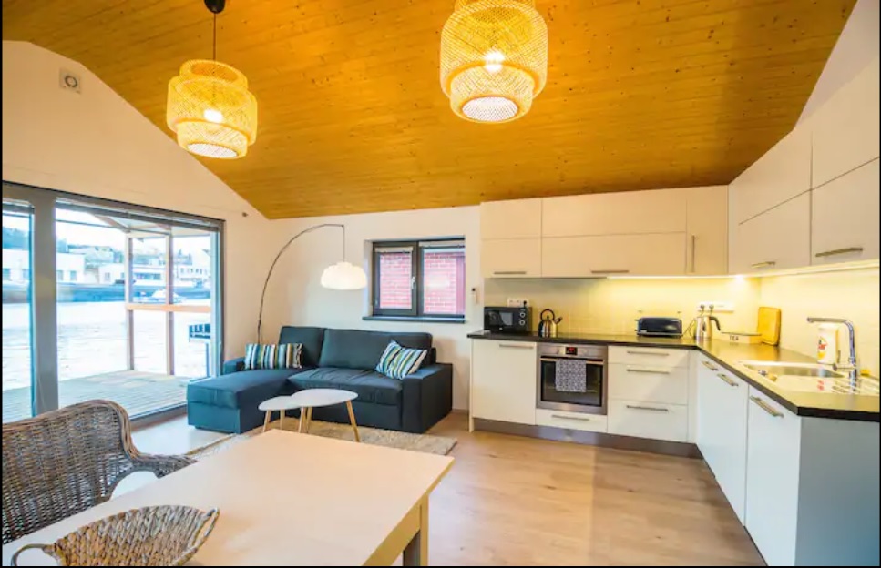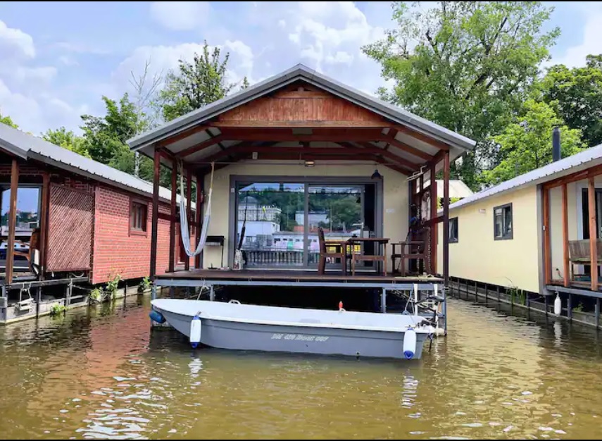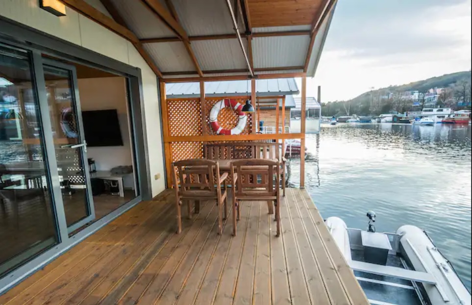 Locuința dispune de două dormitoare cu acces individual, living cu bucătărie și masă, baie cu cadă și terasă. În preț, ai acces gratuit la o barcă mică cu motor electric, pentru șase persoane, astfel încât să poți explora Praga pe cont propriu.