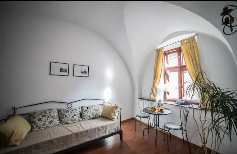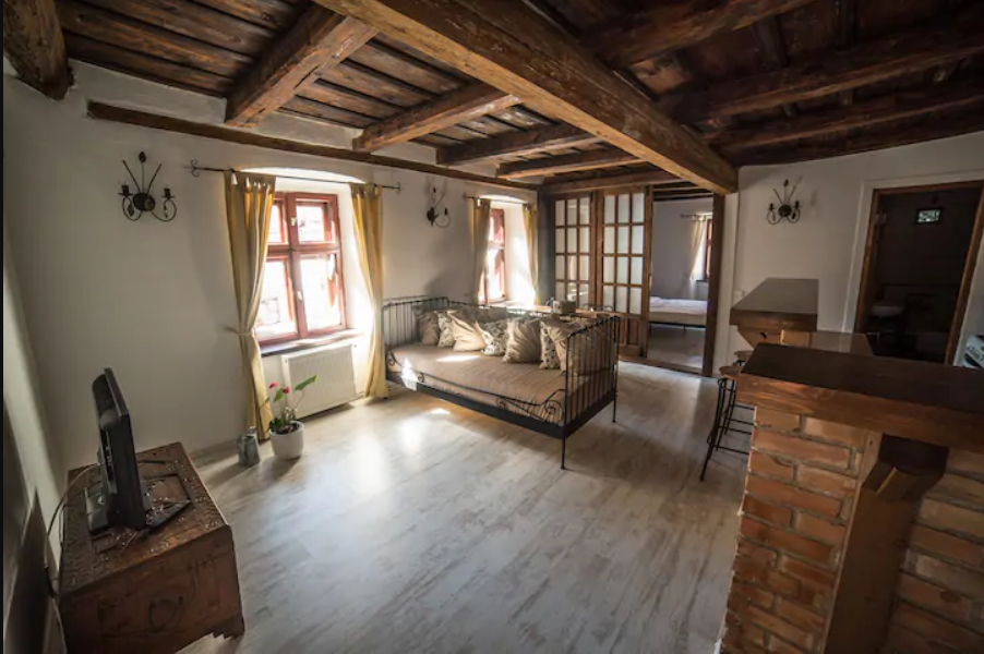 E o locuință într-o clădire de patrimoniu, un apartament cu trei camere și 90 metri pătrați din Orașul Vechi, ce poate găzdui cinci oaspeți în trei paturi. Opțiunea de cazare oferă atât un spațiu confortabil de locuit, cât și o privire în istoria Sibiului, prin arhitectura restaurată și mobilierul pictat manual.