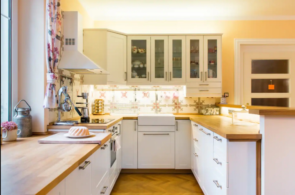 Sufrageria este foarte mare, plină de lumină naturală, cu bucătărie, zonă de luat masa și zonă de relaxare. Locuința dispune de patru dormitoare mari, decorate cu mobilier cu linii clasice, potrivit pentru un sejur într-un oraș medieval. În bucătărie, pasionații de gătit găsesc tot ceea ce este necesar pentru prepararea mesei: cuptor, aragaz, cuptor cu microunde, aparat de cafea, ceainic, mixer, frigider, mașină de spălat vase.
