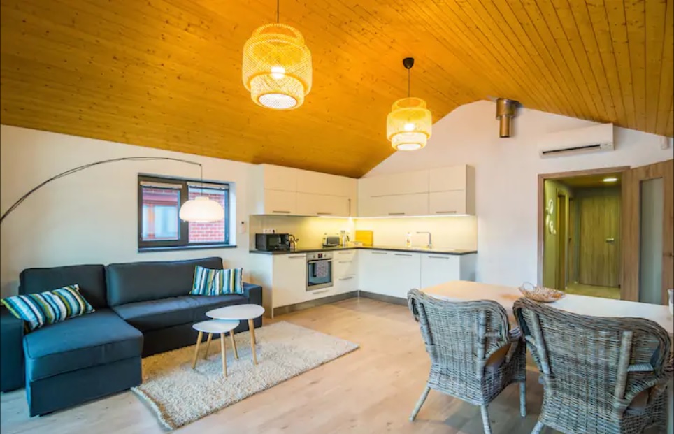 Spațiul dispune de o bucătărie complet utilată, un dormitor pentru două persoane, living, baie cu cadă și duș. Chiar și câinii sunt bineveniți, pentru o taxă de 10 euro/zi, ce-i drept.