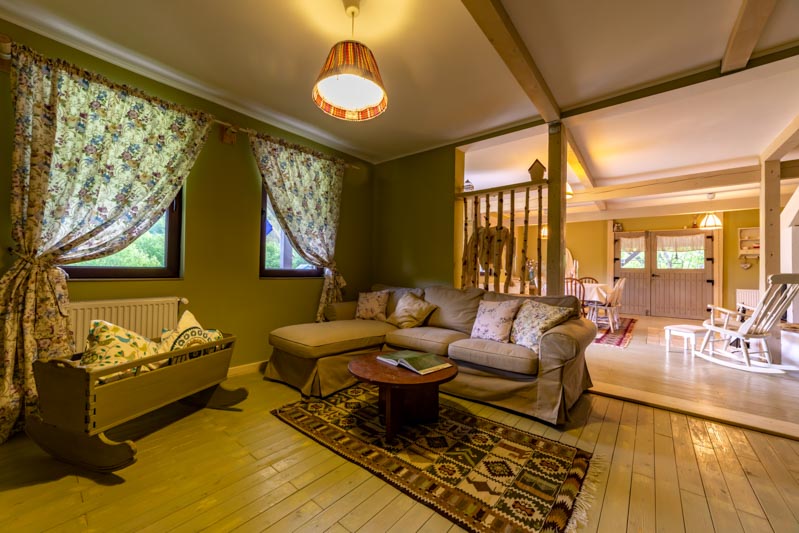 În ceea ce privește interiorul casei, camerele sunt renovate cu materiale naturale și decorate în spirit simplu, țărănesc și autentic.