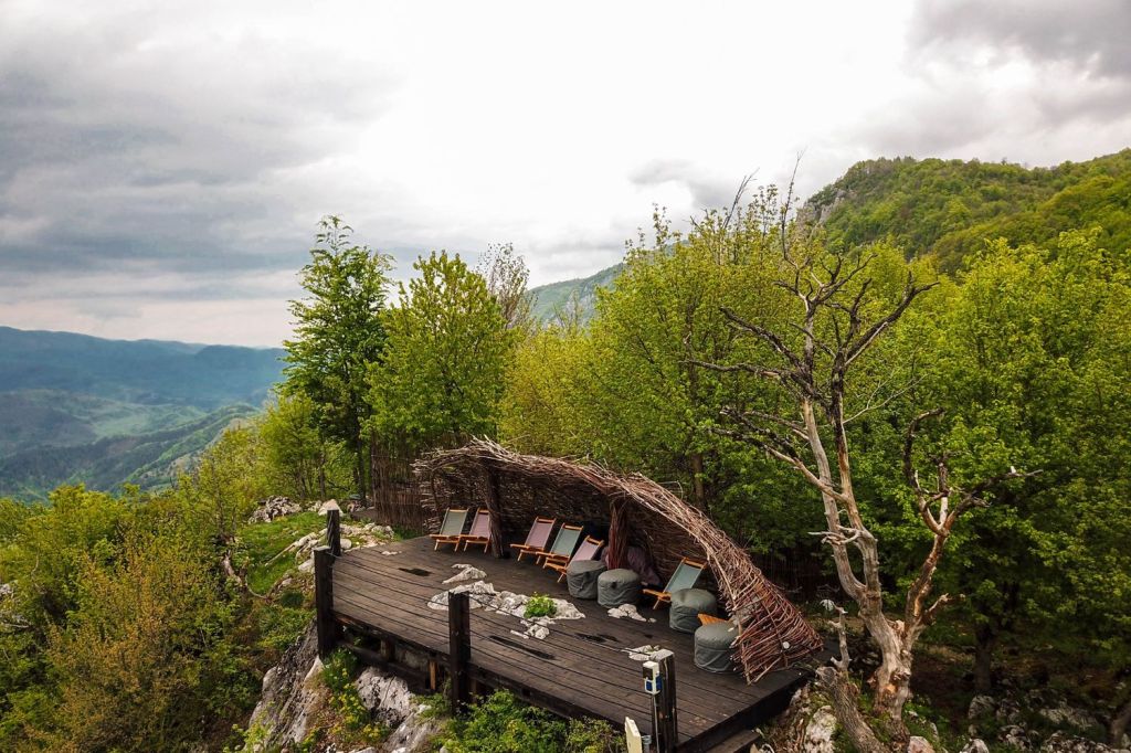 În cadrul complexului există și un restaurant cu preparate pe bază de alimente organice, gătite după rețete arhaice. Locul nostru preferat? Terasa construită pe stânci, de unde poți admira frumusețea sălbatică a munților.