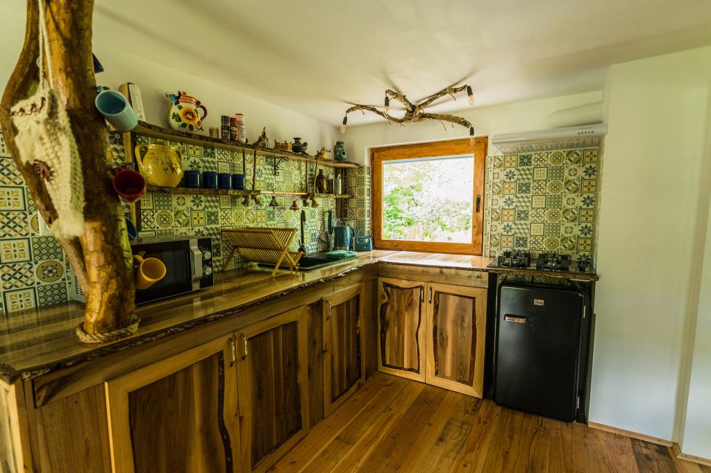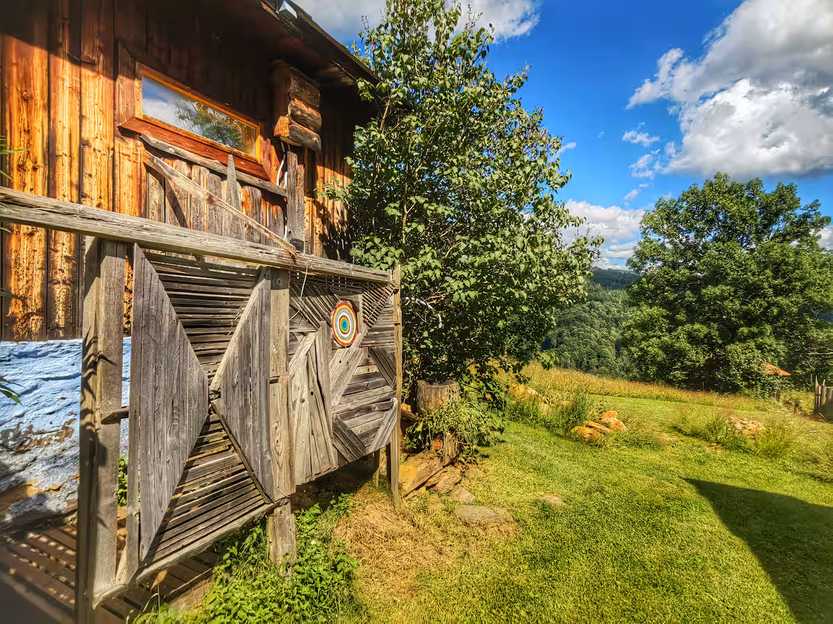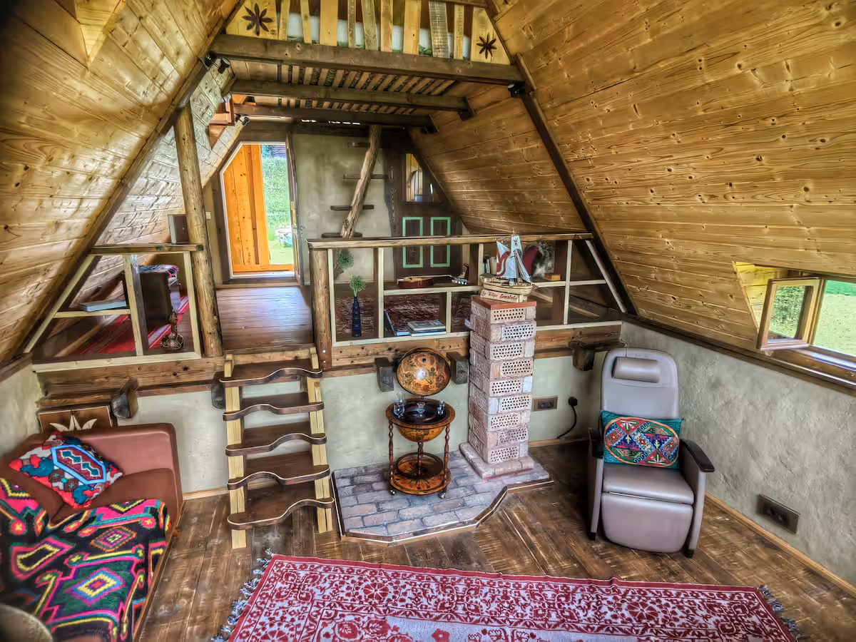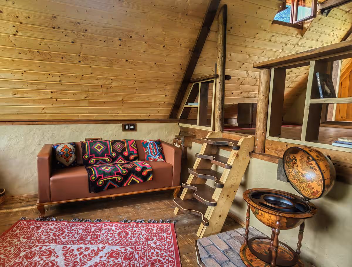 Oaspeții au la dispoziție un loft privat cu o intrare separată și o priveliște uimitoare, duș fierbinte în aer liber, toaletă cu compost, zonă de foc de tabără în aer liber, hamac sub cireși. Locuința se află în vârful dealului, unde poți ajunge pe un drum de țară, din centrul satului, accesibil cu o mașină normală sau pe jos.