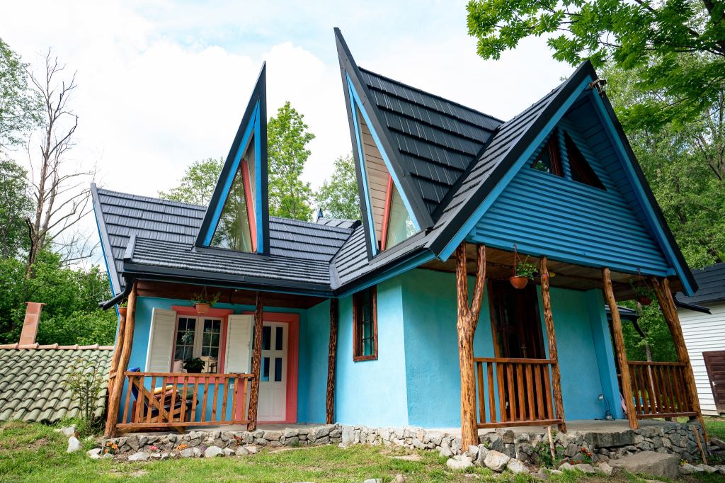 Am ales această cazare pentru culoare, una folosită atât la exterior, cât și în interior, și care mă poartă cu gândul spre casele hobbiților sau ale incașilor. Viewtopia – Tărâmul Secret este situată în Valea Drăganului din județul Cluj, în inima Munților Apuseni. Satul de vacanță este o locație inedită, amplasată la circa 100 metri de șoseaua principală, într-un loc intim și liniștit.