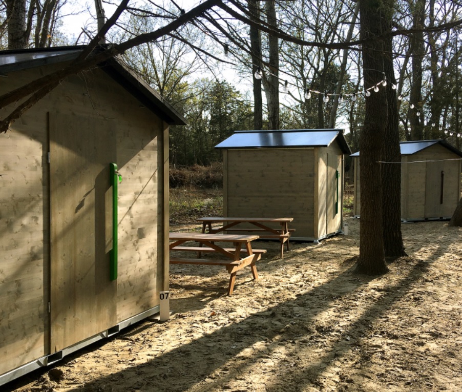 Căsuțele dispun de paturi cu saltele odihnitoare, un scaun, un covor și cuier care poate fi folosit și drept cuier pentru haine. Campingul dispune de băi și dușuri comune cu apă caldă non-stop și obiecte sanitare moderne. Amplasarea în inima pădurii face din acest loc de cazare o promisiune de răcoare, în zilele caniculare de vară, atunci când te saturi de baie și mare.