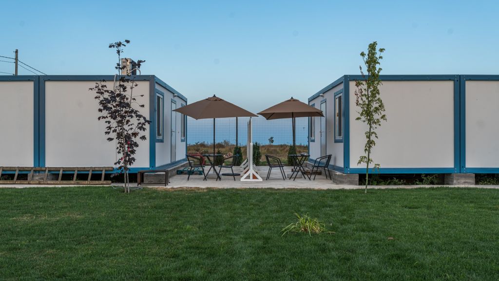 Este vorba despre opt căsuțe într-o combinație de culori alb-albastru, fiecare cu terasă individuală și dotate complet cu aer condiționat, bucătărie, baie și un dormitor. Căsuțele sunt amplasate astfel încât să îți ofere intimitate și liniște, dar, totodată, foarte aproape de plajele Tuzla și Cochilia, pentru amatorii de socializare.