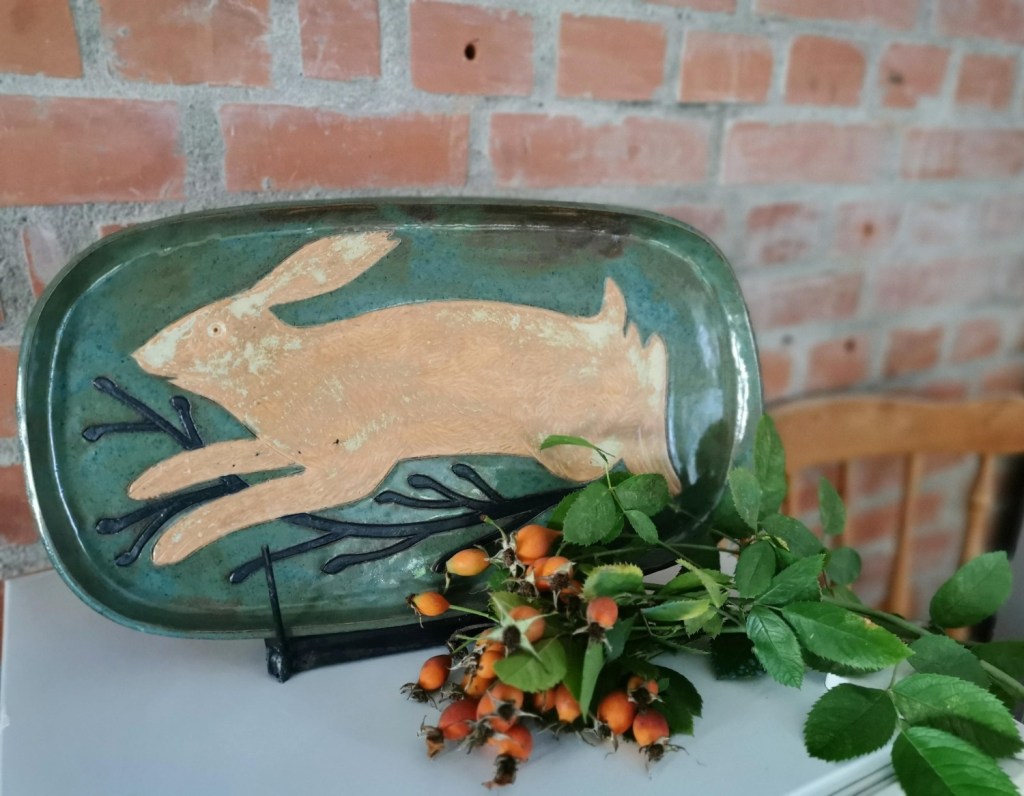 Platou cu iepure în alergare (43×25 cm) – 380 lei.
