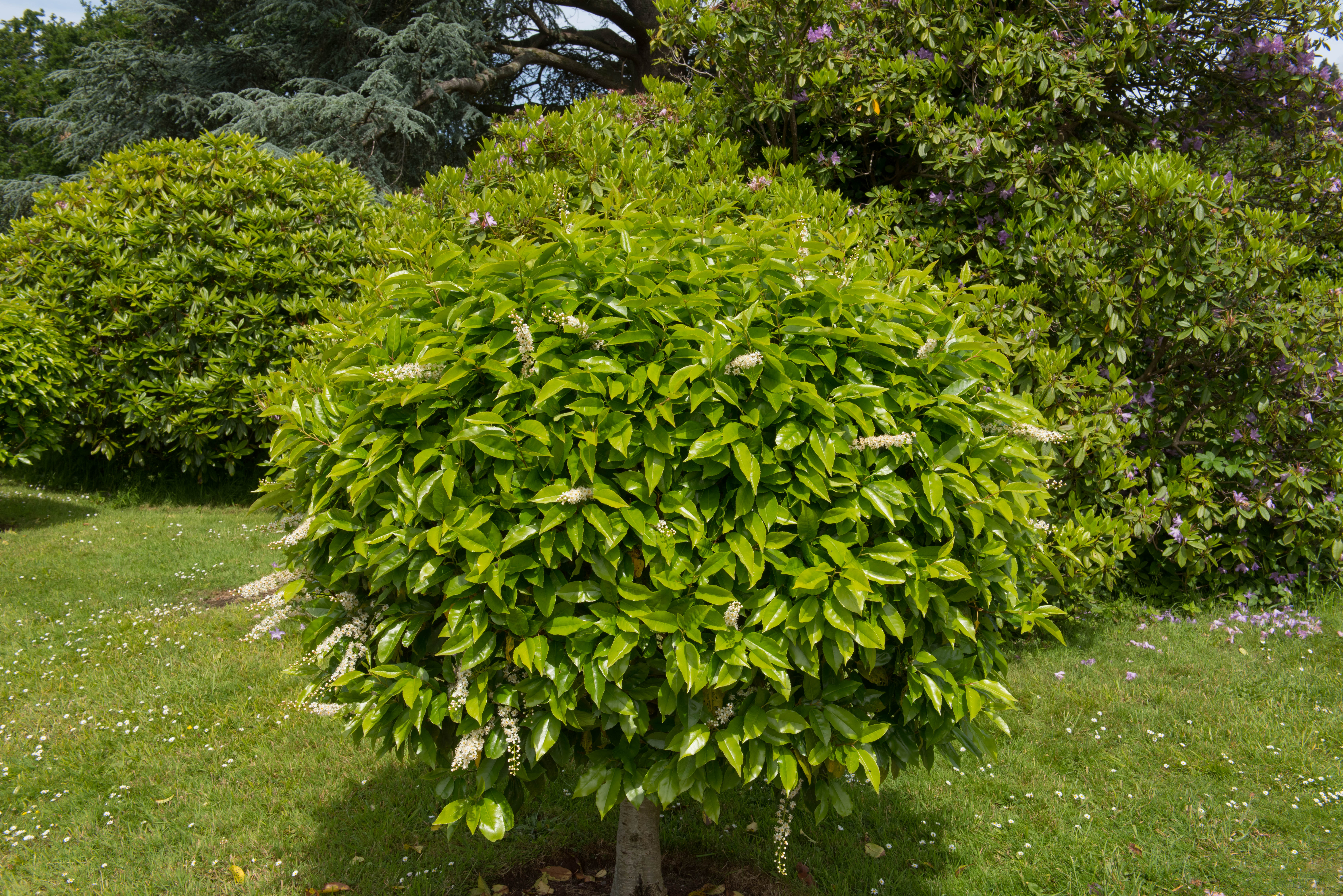 De un verde profund, cu frunze groase și lucioase, laurul englezesc(cireș de laur) se găsește în pepiniere sub formă de tufă. „Dacă dispui de un spațiu redus în grădină, poți crea un efect vizual deosebit, geometric, combinând acest arbust globur cu Thuja spiralati”, explică Daniel.