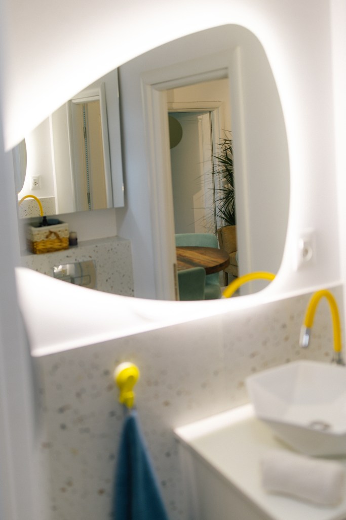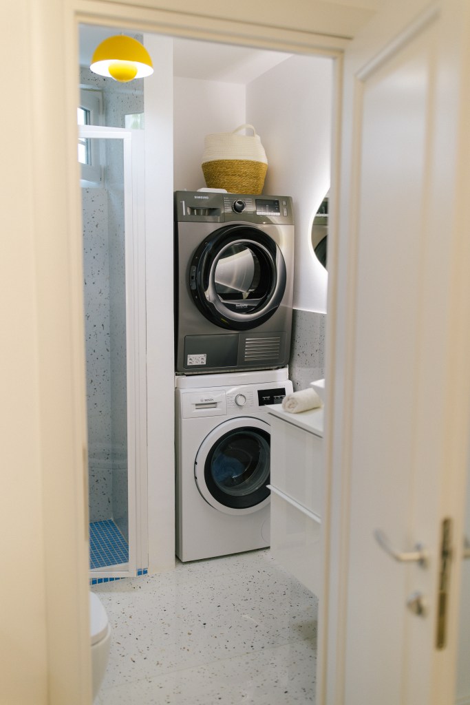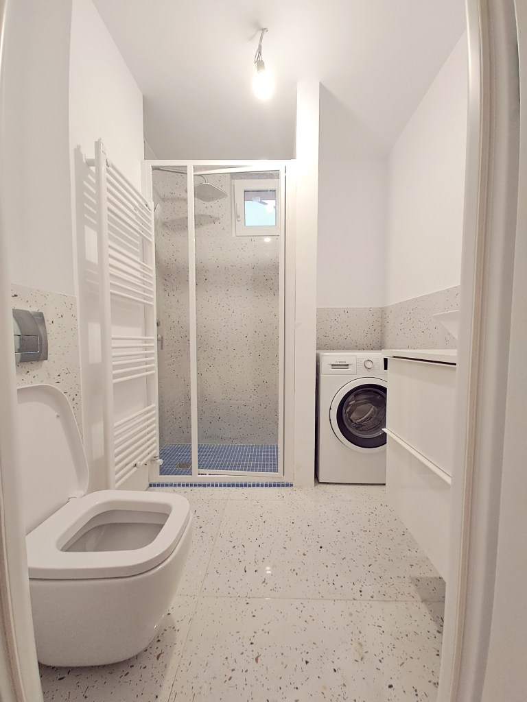 Cea mai mare provocare: Baia pentru că are doar 2m/2m și în ea a trebuit regândit totul. S-au refăcut pereții pentru că erau din BCA și nu ofereau deloc rezistență. Am mai construit un zid care să despartă dușul de mașina de spălat și de uscătorul de rufe. E locul în care încă mă mir cum au încăput toate fără să pară sufocate.
