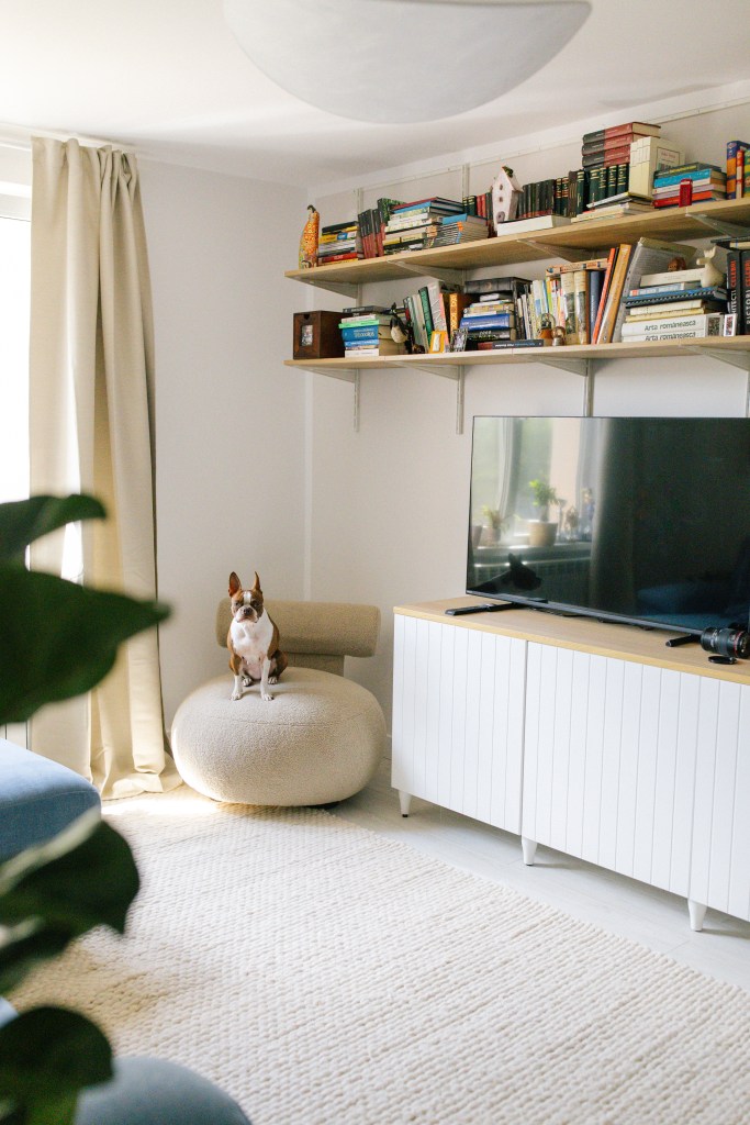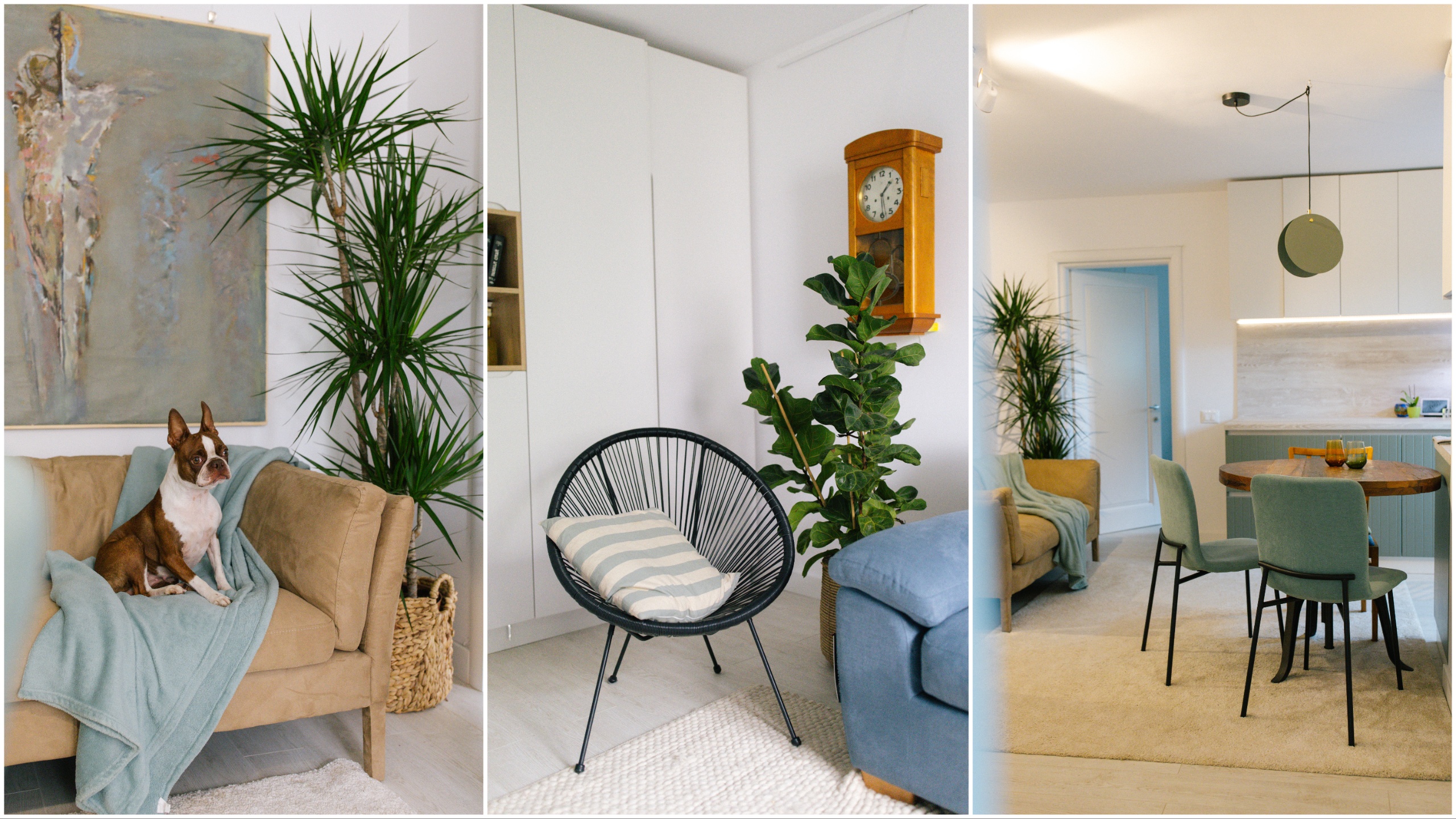 „Avem norocul să stăm într-o zonă cu mult verde. Am refăcut balconul, cu geam de sus până jos, tocmai pentru ne bucura de frumusețea din jur. Pika noastră este cea mai fericită pentru că urmărește, de sus, tot ce se întâmplă afară”, spune Corina. „Când ne-am apucat de renovări, ne fixaserăm un buget de 15.000 euro. Estimări de amator. Am ajuns să cheltuim, până la urmă 25.000 euro, adică toate economiile noastre, dar nu regretăm nici o secundă”.