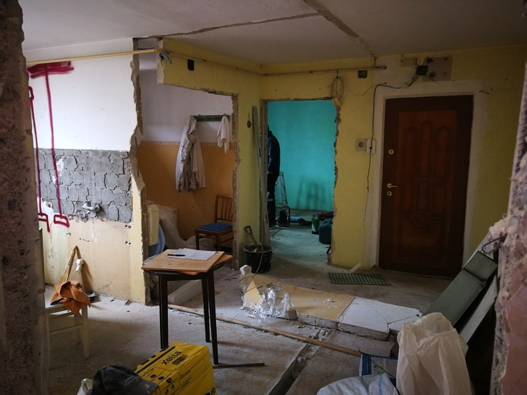 Apartamentul are două camere și o suprafață de 60 metri pătrați. Este situat la etajul al treilea și este scăldat, toată ziua, de razele soarelui. Lumina naturală este probabil lucrul pe care Corina îl iubește cel mai mult la acest apartament, mai ales după treisprezece ani petrecuți într-o locuință la parter. Renovările au însemnat înlocuirea tuturor finisajelor, recompartimentarea holului și a bucătăriei și refacerea instalațiilor. Bogdan a ajutat la dărâmat, cărat și strâns de moloz.