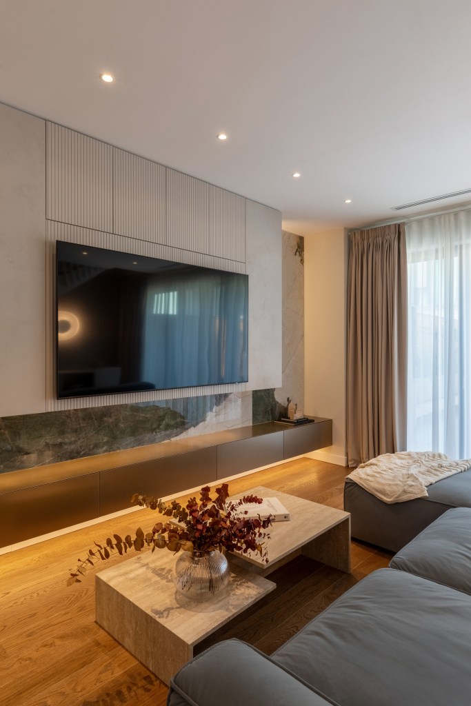 „Nu vă temeți de culorile tari! Acestea spun câte ceva despre oamenii care le aleg!”. Este sfatul arhitecților de la MiSo, la finalul unui proiect în care paleta cromatică a inclus nuanțe îndrăznețe precum verde sau roșu. Amenajarea, care se duce într-o zonă contemporană cu accente glam, păstrează echilibrul între estetică și funcționalitate. Șantierul a durat zece luni și a venit la pachet cu numeroase provocări. Cel mai dificil lucru de gestionat a fost relația cu echipele care s-au ocupat de implementarea proiectului.