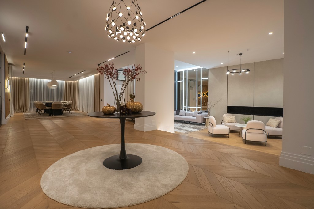 Visul oricărui designer de interior este să lucreze cu suprafețe generoase, dar când ai de amenajat o locuință de 600 metri pătrați utili, provocarea este una pe cinste. Designerul Ana Mihail de la Ann Design Studio s-a convins de acest lucru când a acceptat să configureze interiorul unei case din Pipera, desfășurată pe trei etaje. Concluzia, la finalul celor opt luni de șantier, este că poți să imprimi căldură chiar și unui spațiu atât de neobișnuit. Secretul constă în găsirea unui echilibru între finisaje, culori, texturi și soluții de iluminat care să pună în valoare potențialul locului.