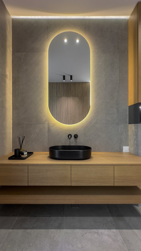 Etajul găzduiește dormitorul matrimonial și câte un dormitor pentru fiecare copil, cu dressing și baie proprie. Decorarea spațiilor a ținut cont, bineînțeles, de preferințele și personalitatea fiecărui membru al familiei. Dar există câteva elemente comune care definesc nu doar etajul, ci întreaga amenajare: spațiile ample și aerisite, cromatica neutră, texturile contrastante și corpurile statement de iluminat.