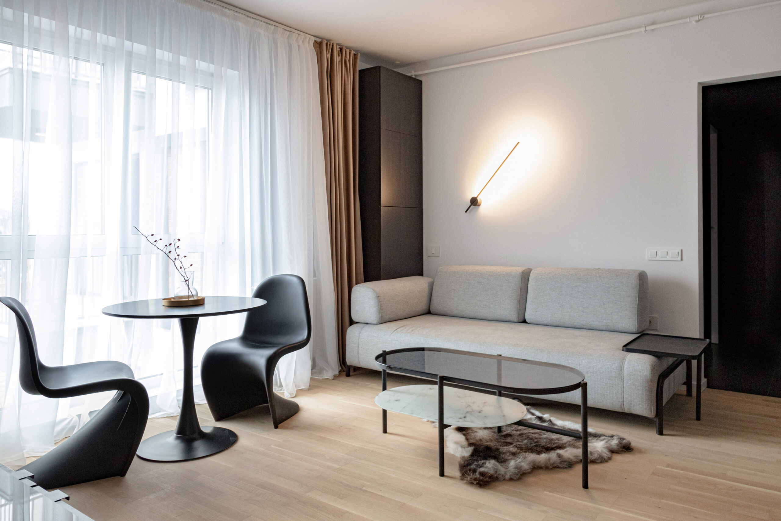 Un interior minimalist, potrivit unui spațiu de închiriat pe termen scurt