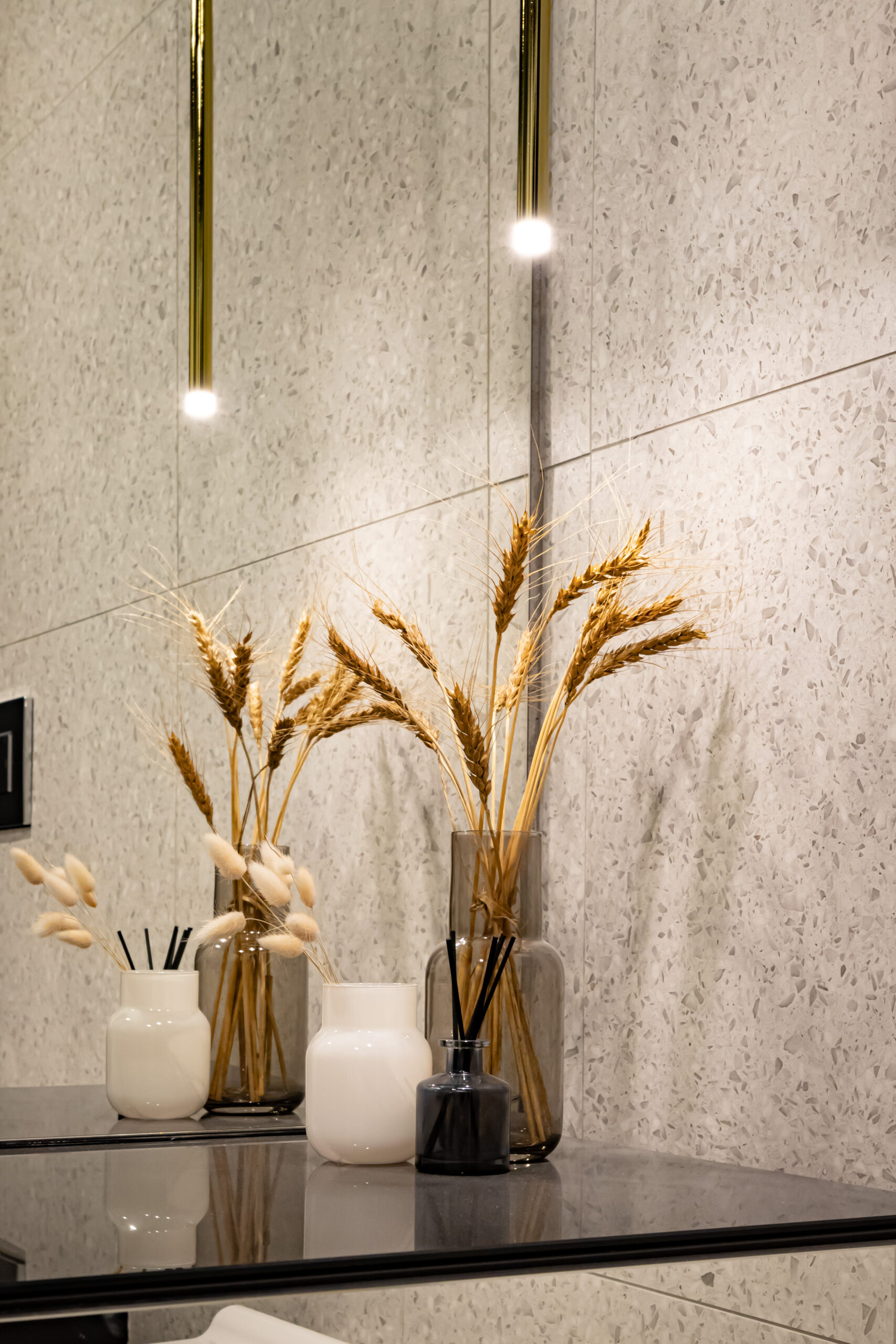 Folosește oglinzi și finisaje lucioase. Sunt mai greu de întreținut, dar sunt materiale care fac diferența într-un spațiu mic.