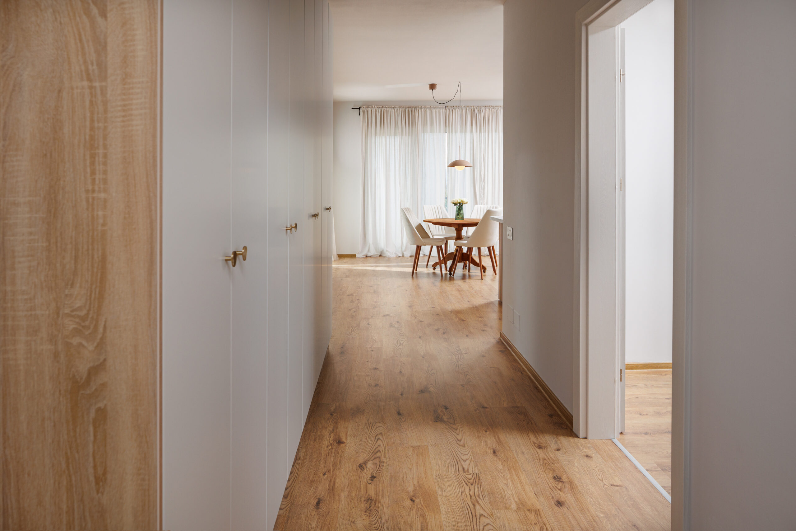 Șantierul a decurs fără probleme, fiind vorba de un apartament nou, lucrările au durat aproximativ cinci luni de zile. Singurul inconvenient pentru Adela a fost că a trebuit să adapteze decorul în funcție de instalațiile configurate de dezvoltator, dar asta nu a dus la compromisuri. Locuința este foarte luminoasă, ceea ce face ca interiorul să pară mult mai mare decât e de fapt. Ajută mult, de asemenea, paleta neutră de culori și lemnul, folosit ca element de legătură. Tot apartamentul este gândit ca un întreg, cu spații care comunică natural și cu zone cu funcționalități bine stabilite.