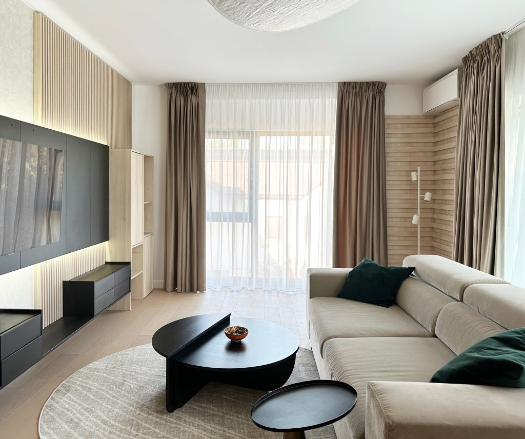 Un apartament din Băneasa, București, a fost mobilat și decorat de Cristian Pătrașcu Studio pentru un cuplu tânăr care și-a dorit un spațiu coerent, calm și ușor de locuit. Proiectul propune un interior contemporan, cu influențe minimaliste și Japandi, în care funcționalitatea susține estetica, iar fiecare element are un rol bine definit.