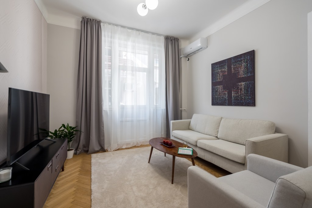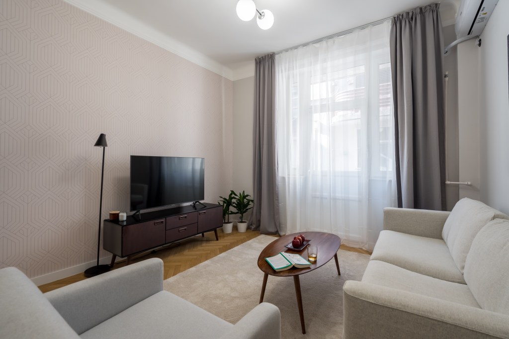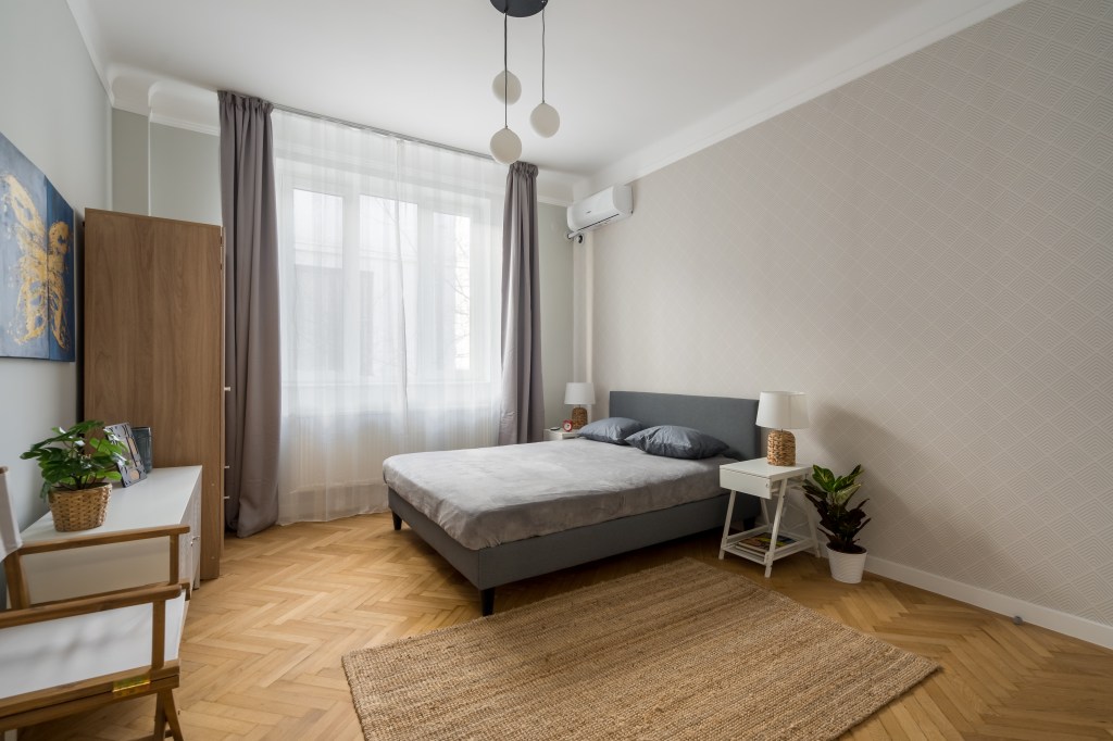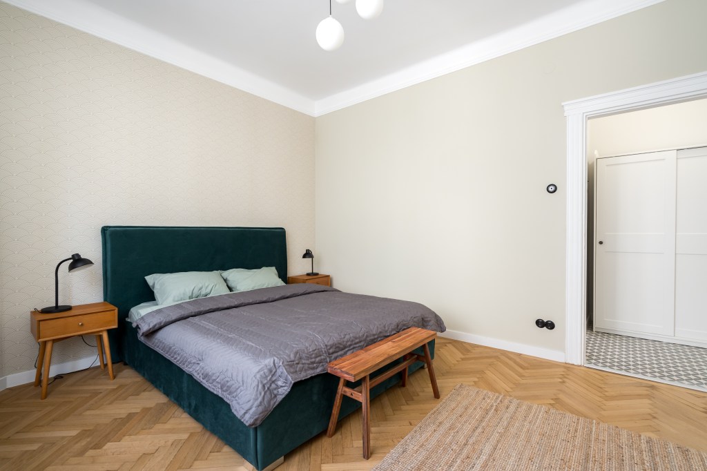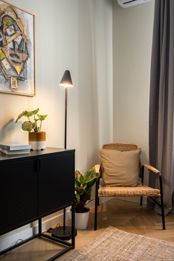 Proprietarul unui apartament situat într-o clădire interbelică din zona bulevardului Dacia din Capitală a făcut echipă cu designerul Ionuț Gherasim de la Massura Studio pentru a reda interiorului farmecul de altădată. Locuința, cu tavane înalte și compartimentare atipică, a devenit un airbnb cochet și luminos, la finalul unui șantier care a durat, cu pauze, zece luni și a presupus o investiție de 30.000 euro.