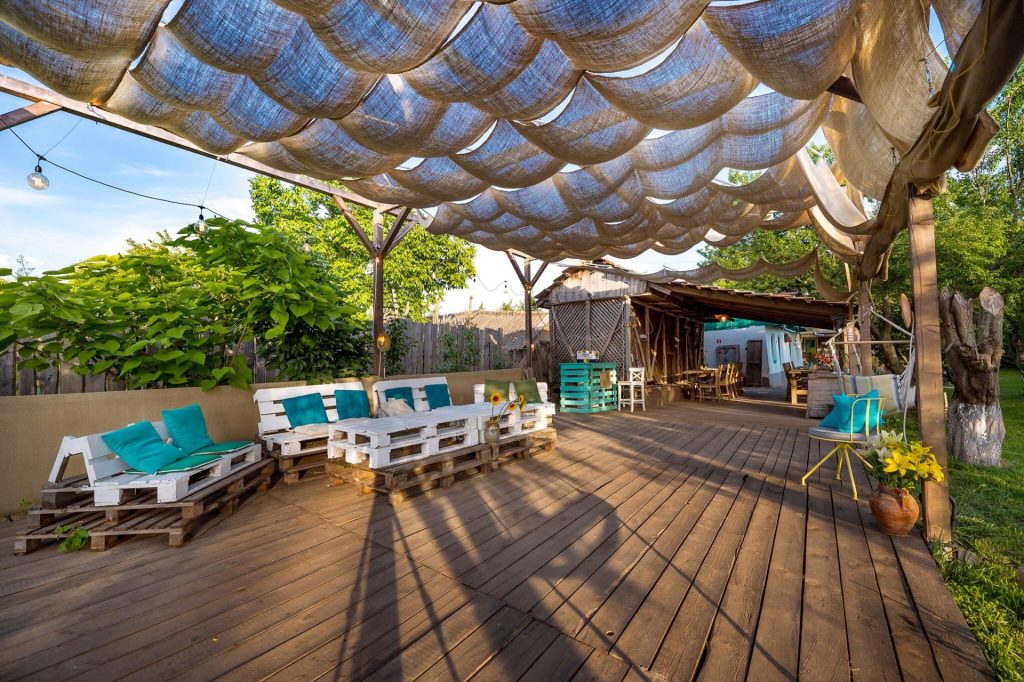 Cea mai mare provocare: Nu a fost ușor să transformăm vechiul hambar de porumb în terasă exterioară. Am ridicat toată structura cu scripeți și cric, am folosit popi de schelă, ne-am folosit de vechea metodă de a face “mangealâc” (par gros pentru ridicarea greutăților). Nea Petrică, meșterul care ne-a ajutat aici, ar râde, căci el nu credea niciodată că ce facem noi “ajunge în presă”.