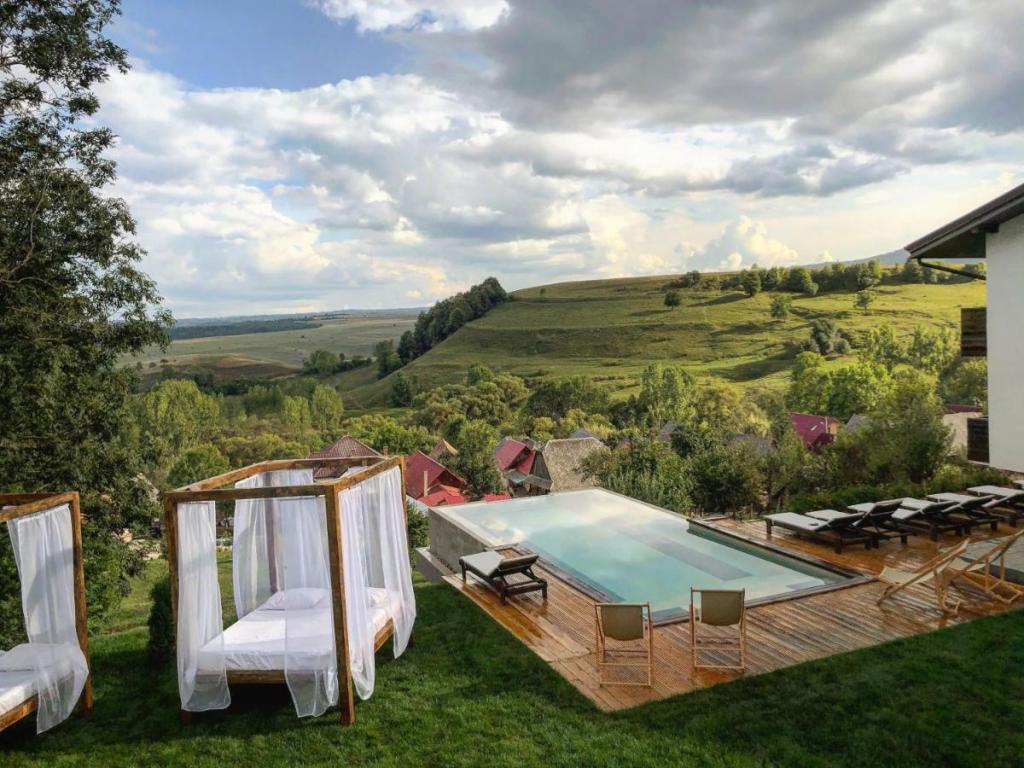E de ajuns să arunci un ochi pe imaginile propuse de cazarea adults only din Mărgău, județul Cluj, pentru a înțelege de ce m-am oprit la ea. Totul, de la piscina infinity cu vedere superbă asupra dealurilor înverzite la paturile amplasate în aer liber, în bătaia vântului, până la activitățile de wellness și wellbeing, precum yoga și meditație, pe care le poți face aici, strigă Bali.