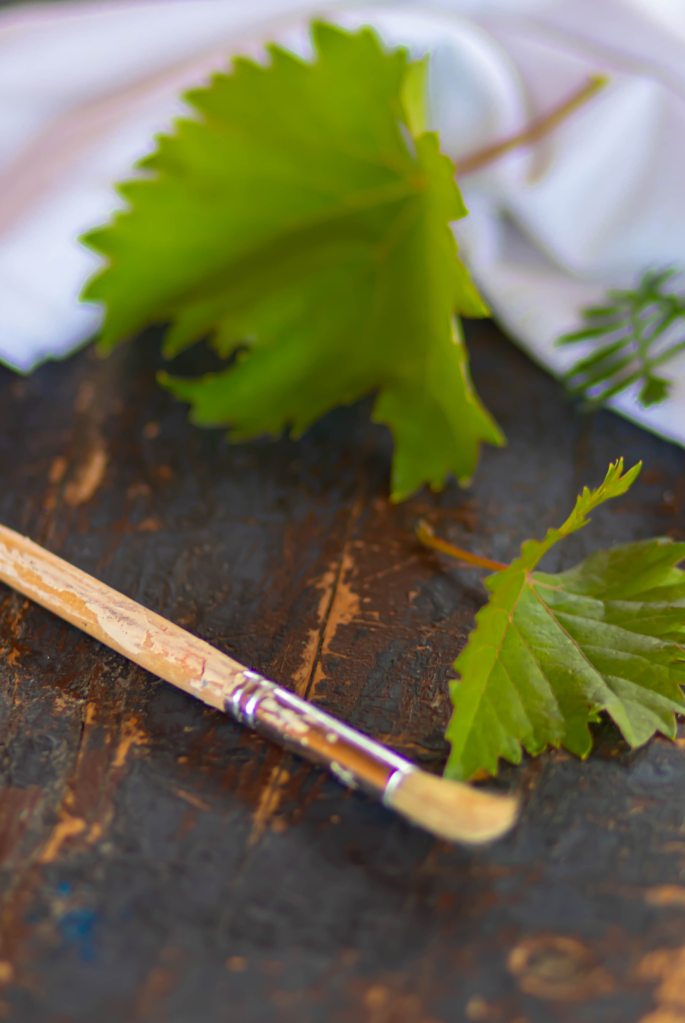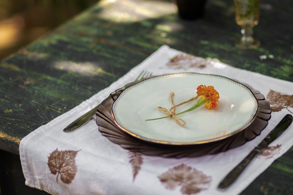 Caută un șervet de masă, într-o nuanță uni și fă-ți timp pentru un proiect de bricolaj care să te scoată din rutină. Ai nevoie de o pensulă nu foarte groasă, de puțină vopsea textilă și de câteva frunze pe care să le folosești ca șablon. Uite cât de simplu este.