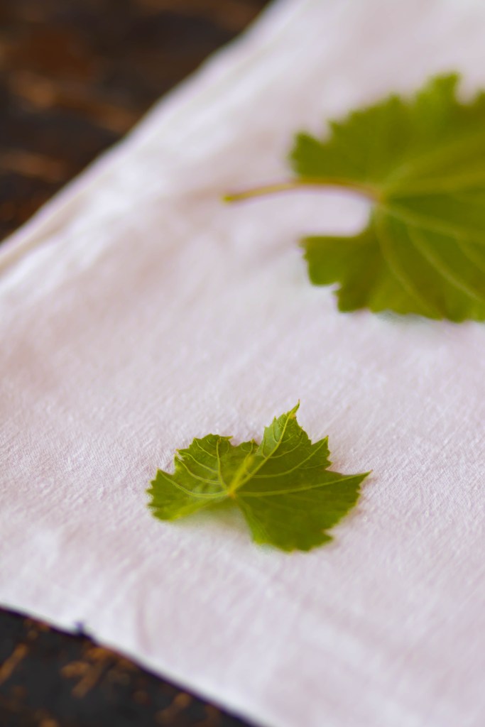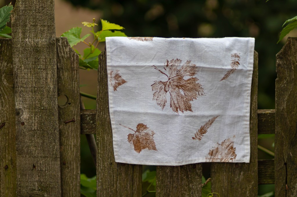 Următorul pas este să alegi imprimeurile. Și aici poți fi creativă. Adună frunze în plimbările tale de prin parc sau plante pe care să le imprimi. Chiar și unele fructe pot fi folosite ca șablon, lămâile, de exemplu, sau merele tăiate felii. Aplică apoi un strat de vopsea pe fiecare frunză în parte, așază frunzele pe material, cu partea vopsită în jos și presează puțin cu mâna. Asta a fost tot. Singurul lucru care îți mai rămâne de făcut este să calci șervetul de masă ca să fixezi vopseaua.