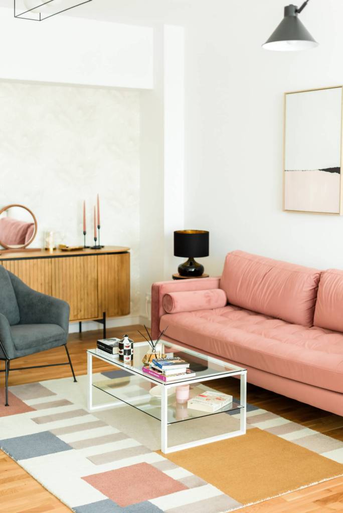 Nela și-a dorit ca în living să existe câteva accente de culoare, însă unele neutre, nu puternice. Așa că a ales să meargă pe nuanțe de gri și roz, mai ales că cea din urmă este și culoarea ei preferată.