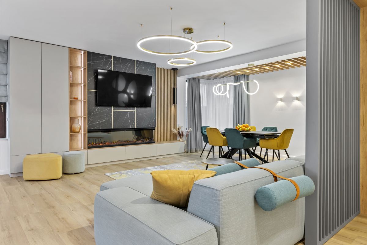 - Folosirea unui iluminat de bază și unul decorativ, de accent, are rolul de a crea personalitate și profunzime.
