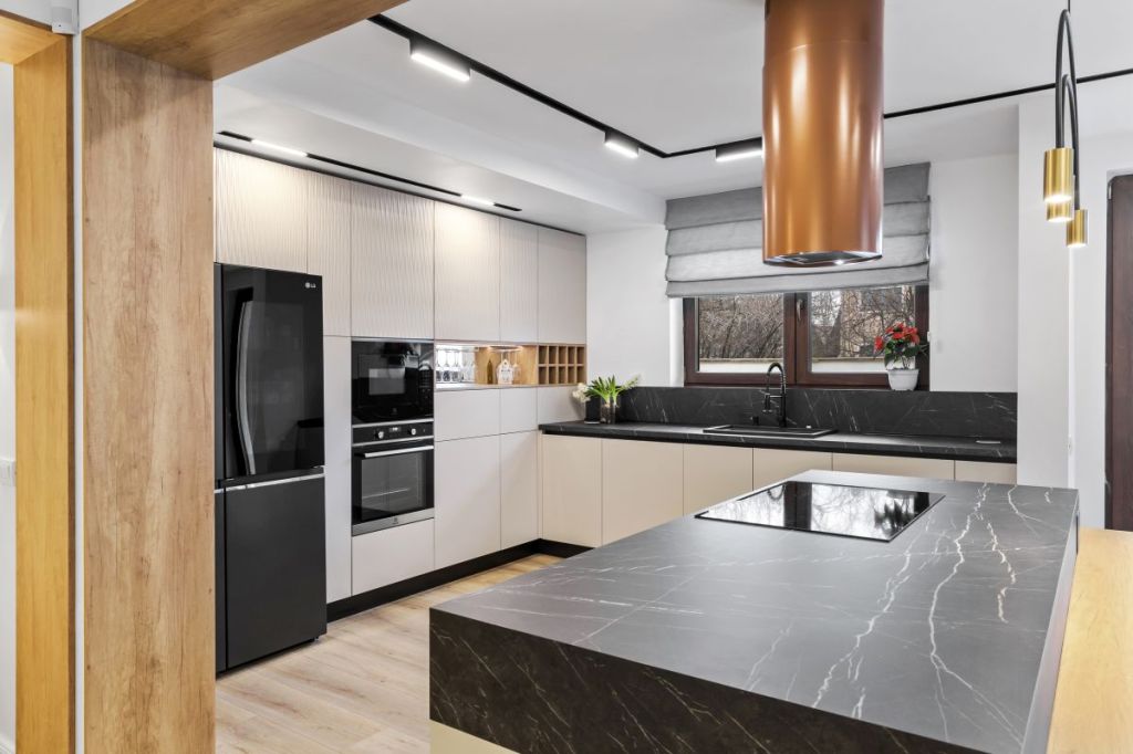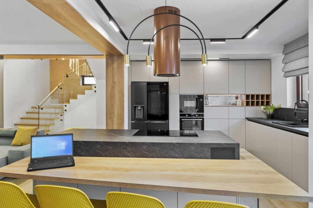 Decizia Alinei de a demola peretele despărțitor dintre living și bucătărie s-a dovedit a fi una dintre marile provocări ale proiectului. Distribuitorul de încălzire prin pardoseală, poziționat inițial pe perete, a fost mutat și ascuns în mobilierul insular din bucătărie. Până la urmă, eforul a meritat, zona de open space fiind cea mai folosită parte a casei.
