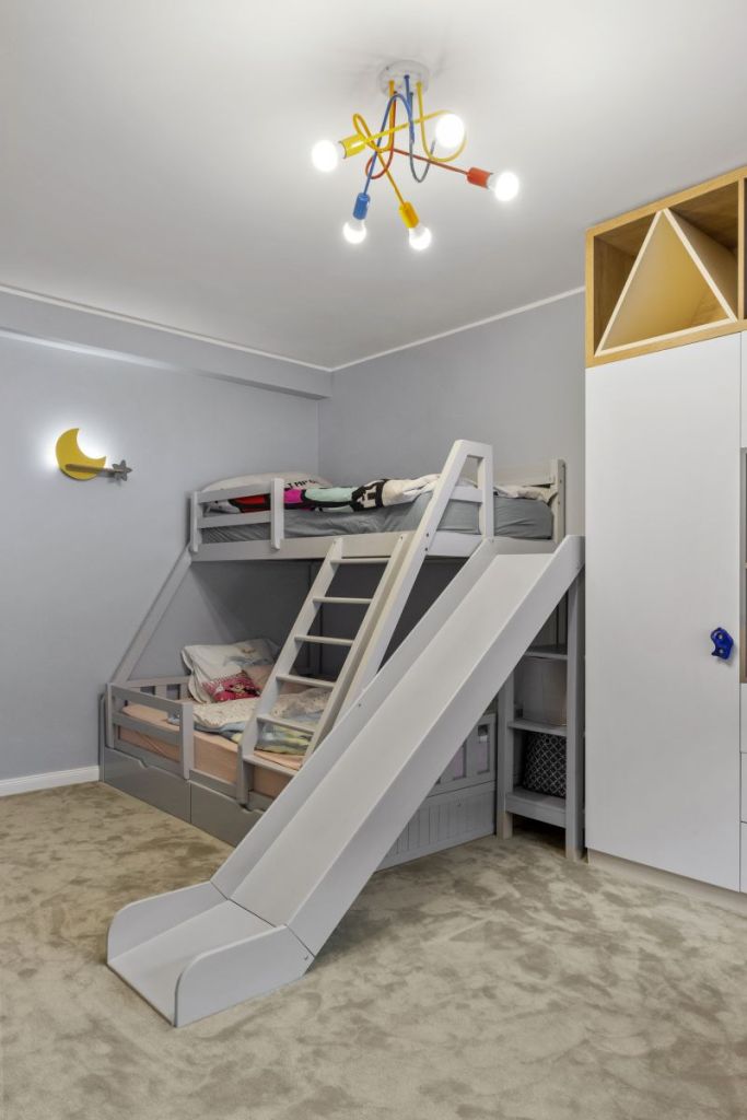 „Am folosit câteva obiecte deosebite care duc amenajarea într-o zonă premium. De exemplu, candelabrul pe două nivele, de pe casa scării. Este un element elegant și impunător și primul lucru care îți sare în ochi când pășești în casă. Canapeaua, cada neagră și patul supraetajat din camera copiilor sunt alte piese care pot intra în categoria răsfăț. Toate însă au rolul lor în conturarea imaginii de ansamblu”, spune Alina.