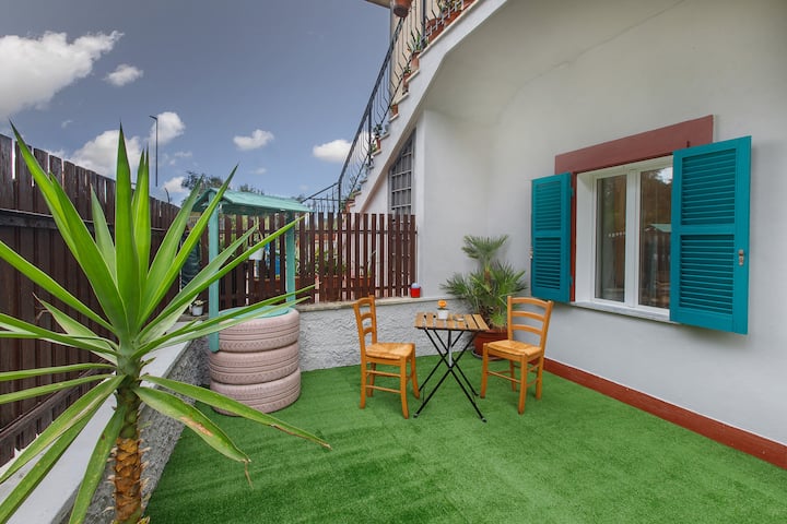 Poate că această casă este la ceva distanță de Roma, mai exact circa o oră de condus de centrul capitalei Italiei, dar este o propunere potrivită pentru cei care vor să mixeze agitația citadină cu farmecul peisajului rural. Iar simfonia de culori pe care ți-o propune acest apartament este irezistibilă. Locuința are trei dormitoare, dintre care două cu balcon și priveliște asupra naturii și vegetației bogate.Te vor cuceri, ca și pe noi, aerul marin al decorului interior și obloanele colorate intens ale parterului casei.