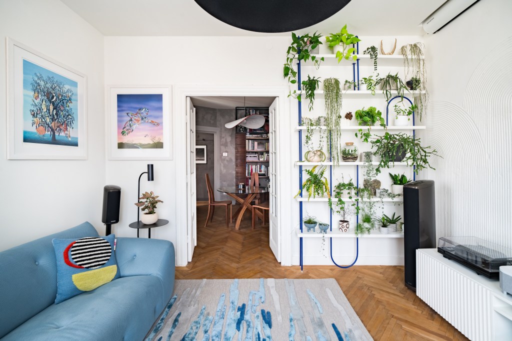 Expoziție în hol și o bibliotecă de plante, două elemente de bază din apartamentul interbelic al unui geograf îndrăgostit de Depeche Mode