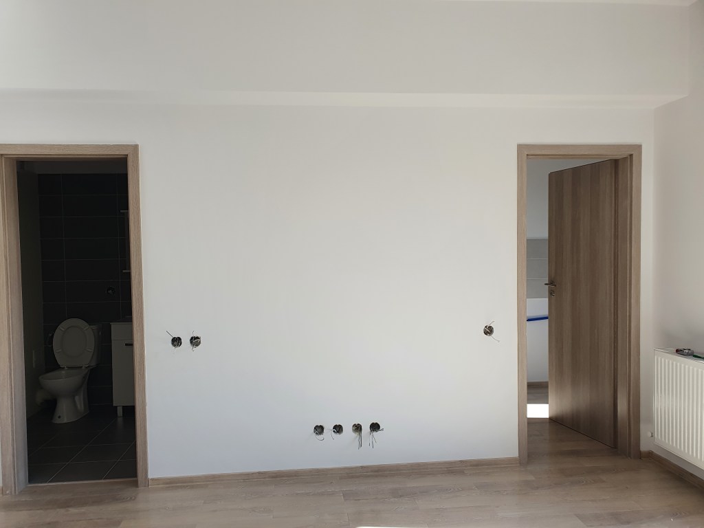 Garsoniera este alcătuită dintr-o cameră de 18 metri pătrați, bucătărie și baie. Compartimentarea locuinței nu include un hol propriu-zis, ci doar o nișă cu o adâncime de un metru, așa că intrarea se face direct în zona de living. Nu a fost singura problemă care a influențat amenajarea spațiului. Tabloul electric, montat în mijlocul peretelui și o grindă la doar doi metri înălțime, fix deasupra ușii, au limitat destul de mult soluțiile pentru mobilarea zonei respective.