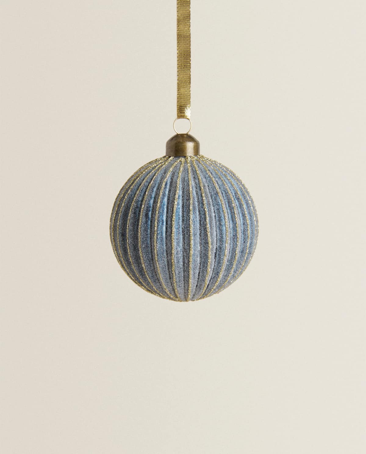 Cu acest glob de la Zara Home mergi la sigur. Respectă culoarea anului și este un accesoriu elegant, datorită tușelor de argintiu. Iar designul liniar nu îți va încărca din punct de vedere vizual bradul.