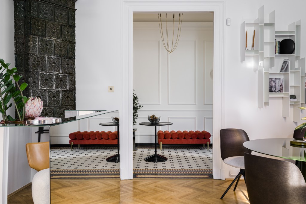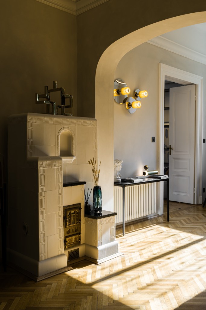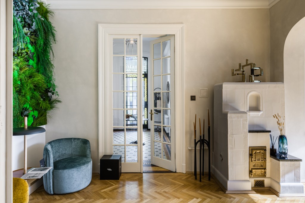 În martie 2023, Raluca și Mihai începeau renovările la casa de pe Sfinții Voievozi, iar în iulie, lucrările erau gata. Marea dorință a celor doi a fost să păstreze cât mai multe detalii originale de arhitectură, de aceea au colaborat cu oameni specializați pe zona de restaurări. Au reușit să păstreze mozaicul de pe pardoseală, ușa metalică, rozeta de pe plafon și ușile interioare din lemn masiv. Cea mai mare bucurie a fost însă recuperarea sobelor de teracotă, adevărate bijuterii, dovadă a frumuseții arhitecturale din Bucureștiul interbelic. Chiar dacă nu mai sunt funcționale, ele sunt elemente care aduc un mare plus spațiului la nivel vizual. Raluca și Mihai au ajutat și ei pe șantier: au refăcut plinte, au lipit profile, au aplicat vopsea decorativă. Dar, spun cei doi, acum totul are o semnificație aparte.