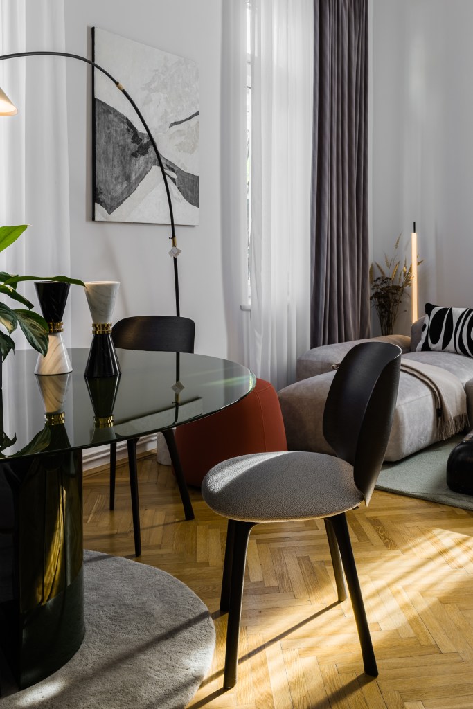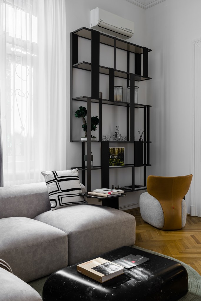 „De cum am intrat, m-am îndrăgosit de acea lumină de iarnă târzie și de toate elementele orginale care se păstraseră încă: parchetul, sobele, ușile, iluminatorul din plafon. Mi se părea că totul spune o poveste”, își amintește Raluca. „După o săptămână însă, când am venit cu întrega echipă ca să le prezint spațiul, entuziasmul mi-a mai scăzut pentru că am întâmpinat destul de multă reținere. Starea de degradare în care se afla casa a semănat îngrijorare și cu toții am avut emoții că nu o să reușim să o aducem la imaginea pe care o aveam în minte. Însă ca în orice poveste de dragoste trebuie să riști puțin… și bine am făcut”.