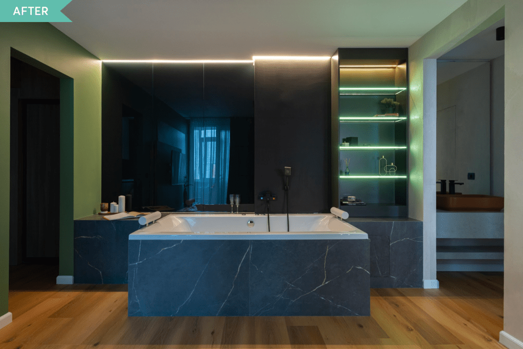 Și-a dorit o amenajare premium, cu o atmosferă specială, prin urmare a lucrat cu un birou de design interior. Echipa VIM Studio, formată din arh. int. Diana Alexandra Onel (autor) și arh. int. Ștefania Bobaru-Chirleșan (coordonator), își amintește că, la prima vizită, totul era foarte înghesuit. Baia era atât de mică încât era aproape nefuncțională.
