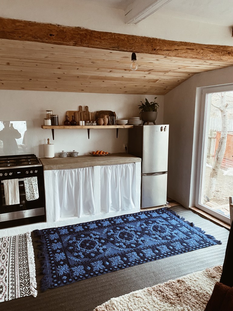 Cei doi tineri au făcut aproape totul pe cont propriu. Deși au doar 24 de ani și nici o experiență în domeniul construcțiilor, au învățat singuri să zidească, să dea cu var, să cultive legume și să crească animale. A fost multă muncă fizică și încă mai sunt lucruri de pus la punct, dar se simt cu adevărat „acasă”. Până la acest punct, au investit aproape 12.000 euro. Cele mai multe lucrări au fost pe partea de structură, adică redesenarea spațiului prin eliminarea sau mutarea de pereți pentru a crea fluxuri noi. Sebastian s-a ocupat de mobilier, în baie și în bucătărie. În ambele încăperi, a făcut o structură din BCA, pe care gletuit-o ulterior. Blatul din bucătărie este făcut din ciment acoperit cu un strat de rășină.
