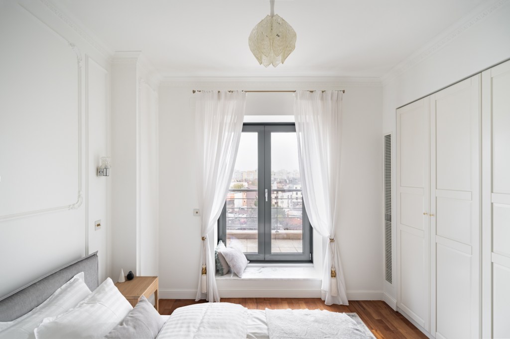 - Fii atent la dimensiunea obiectelor și la alegerea culorilor, mai ales când trebuie să decorezi un spațiu de mici dimenisuni. Un pat prea mare face ca dormitorul să devină nefuncțional. Și noi am pățit-o, chiar la acest proiect și am fost nevoiți să optăm pentru o variantă care să se încadreze mai bine în configurația camerei.