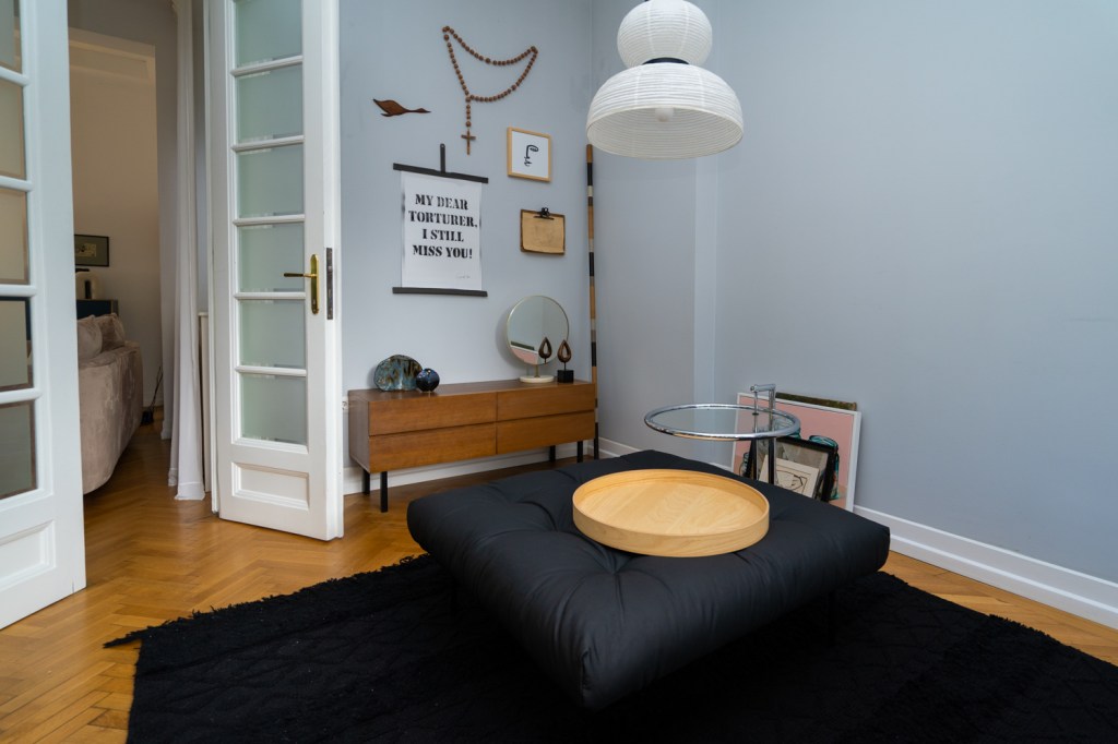 În 2016, a cumpărat acest apartament din Cotroceni de amenajarea căruia s-a ocupat exclusiv. Totul a durat un an și a costat aproximativ 50.000 de euro. Anna spune că a fost primul proiect în care a trebuit să negocieze deciziile și alegerile cu partenerul de viață și nu cu un client, dar, de cele mai multe ori, modul în care și-a susținut argumentele a fost exact ca-ntr-o discuție cu un client. Rezultatul este pe măsură și se bucură amândoi de el.